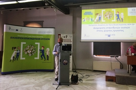 Η εκδήλωση πραγματοποιήθηκε στο πλαίσιο των δράσεων του 1ου έτους της Ευρωπαϊκής Εκστρατείας Ασφαλείς και Υγιείς Χώροι Εργασίας 2018-2019 «Διαχείριση Επικίνδυνων Ουσιών» και της Εθνικής Στρατηγικής για την Υγεία και Ασφάλεια στην Εργασία 2016-2020. Στόχοι της Ευρωπαϊκής Εκστρατείας είναι να ευαισθητοποιήσει σχετικά με τη σημασία της πρόληψης των κινδύνων που συνδέονται με επικίνδυνες ουσίες, συμβάλλοντας στην εξάλειψη των συνηθισμένων παρανοήσεων και να προωθήσει την αξιολόγηση των κινδύνων μέσω της παροχής πληροφοριών σχετικά με πρακτικά εργαλεία και της δημιουργίας ευκαιριών για τη διάδοση καλών πρακτικών με έμφαση στην εξάλειψη ή υποκατάσταση επικίνδυνων ουσιών στον χώρο εργασίας και την ιεράρχηση των μέτρων πρόληψης, ώστε να επιλέγεται πάντα ο καταλληλότερος τύπος μέτρων.